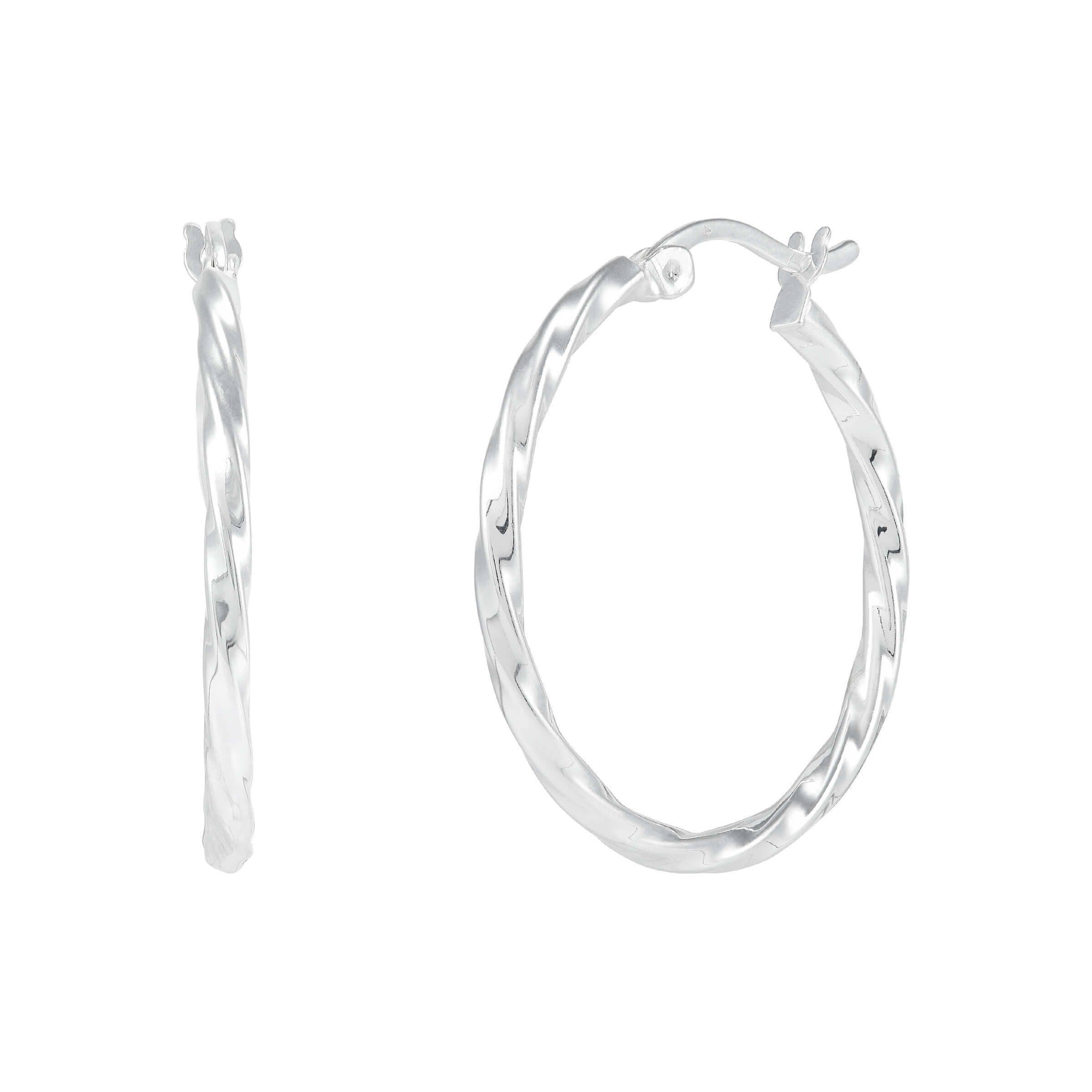 Wear these twisted hoops for a modern take on style. The sleek, sophisticated design of these hoop earrings features the perfect combination of class and edge. Wear them with a high ponytail or let your hair fall freely to show off their curved silhouette. The pieces comes with a '.925' sterling silver stamp as a symbol of guaranteed product quality.