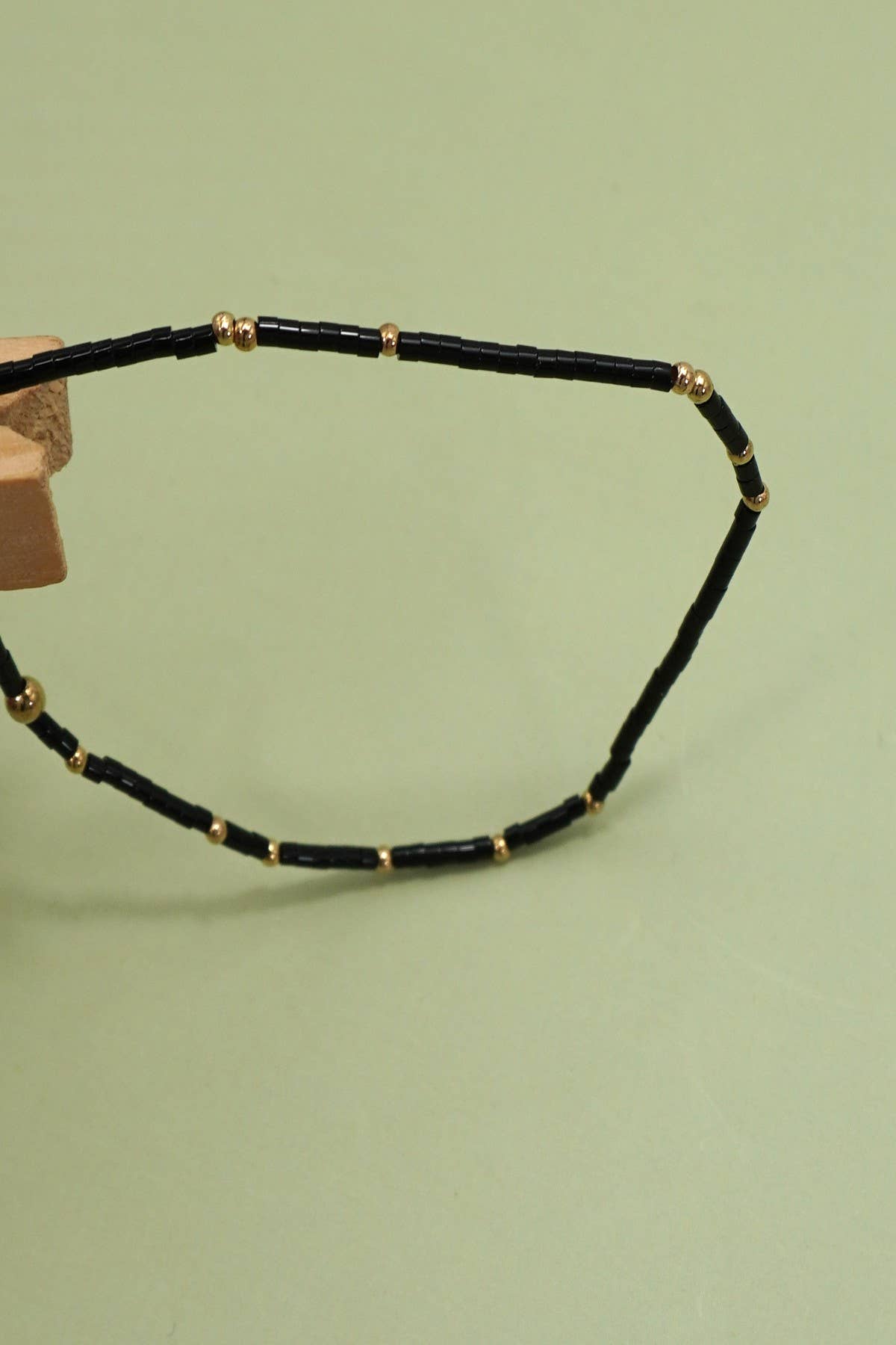 Vibrant boho inspired bracelet showcases a lively array of colorful beads interwoven with delicate ball chains for a free-spirited, eclectic style. Each strand features an assortment of hand selected beads in varied hues.