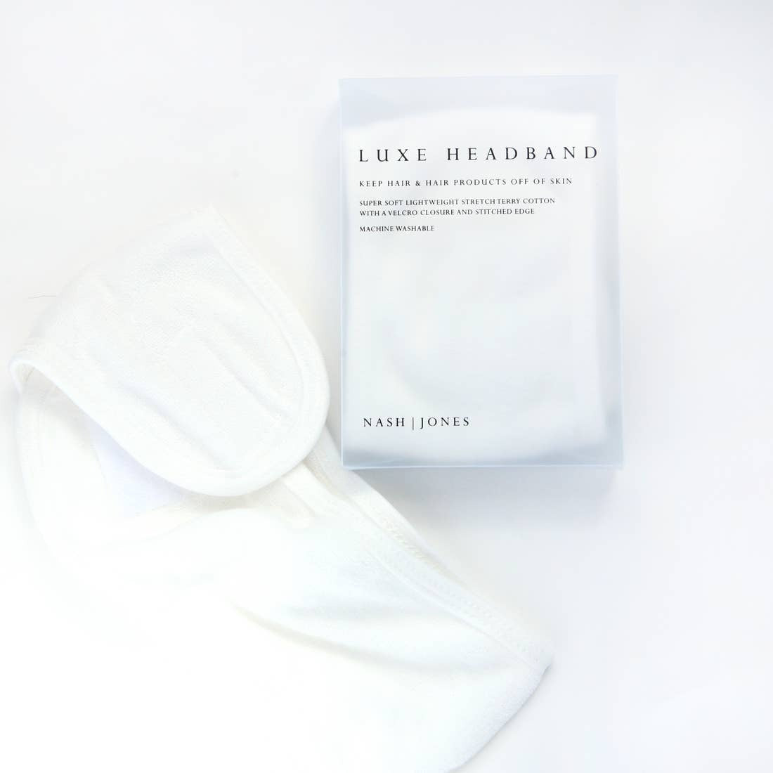 Our Super Soft Luxe Cloth headband has a velcro closure for the easiest way to pull back hair for cleansing/masks/applying make-up/etc.